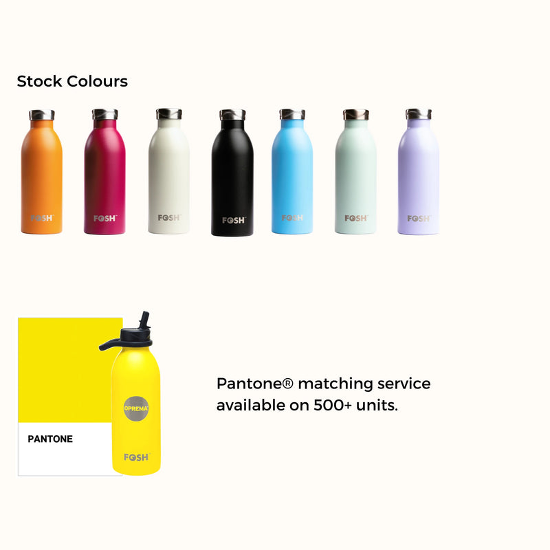 Prefer the bottle in your own brand colour? We've got you covered. The #foshbottle's ultra-durable powder coating can be produced in any Pantone®.